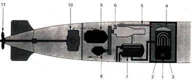 · les structures du sous-marin coque et cloisons résistantes à la pression